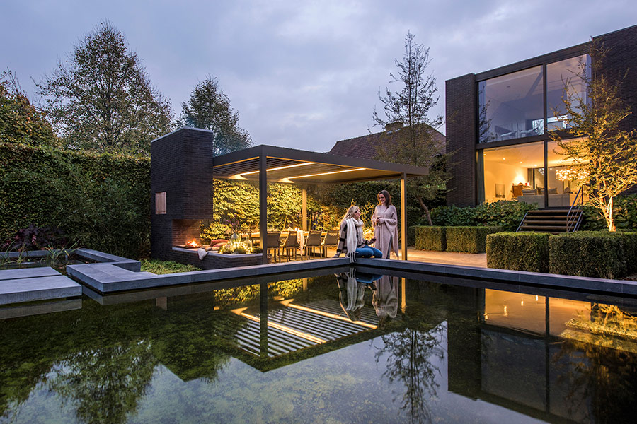 Pergola à lames orientables pour une aération optimale, pergola avec toiture en toile rétractable pour vous protéger des intempéries et toiture en verre pour un gain de luminosité ou fermeture en jardin d’hiver.